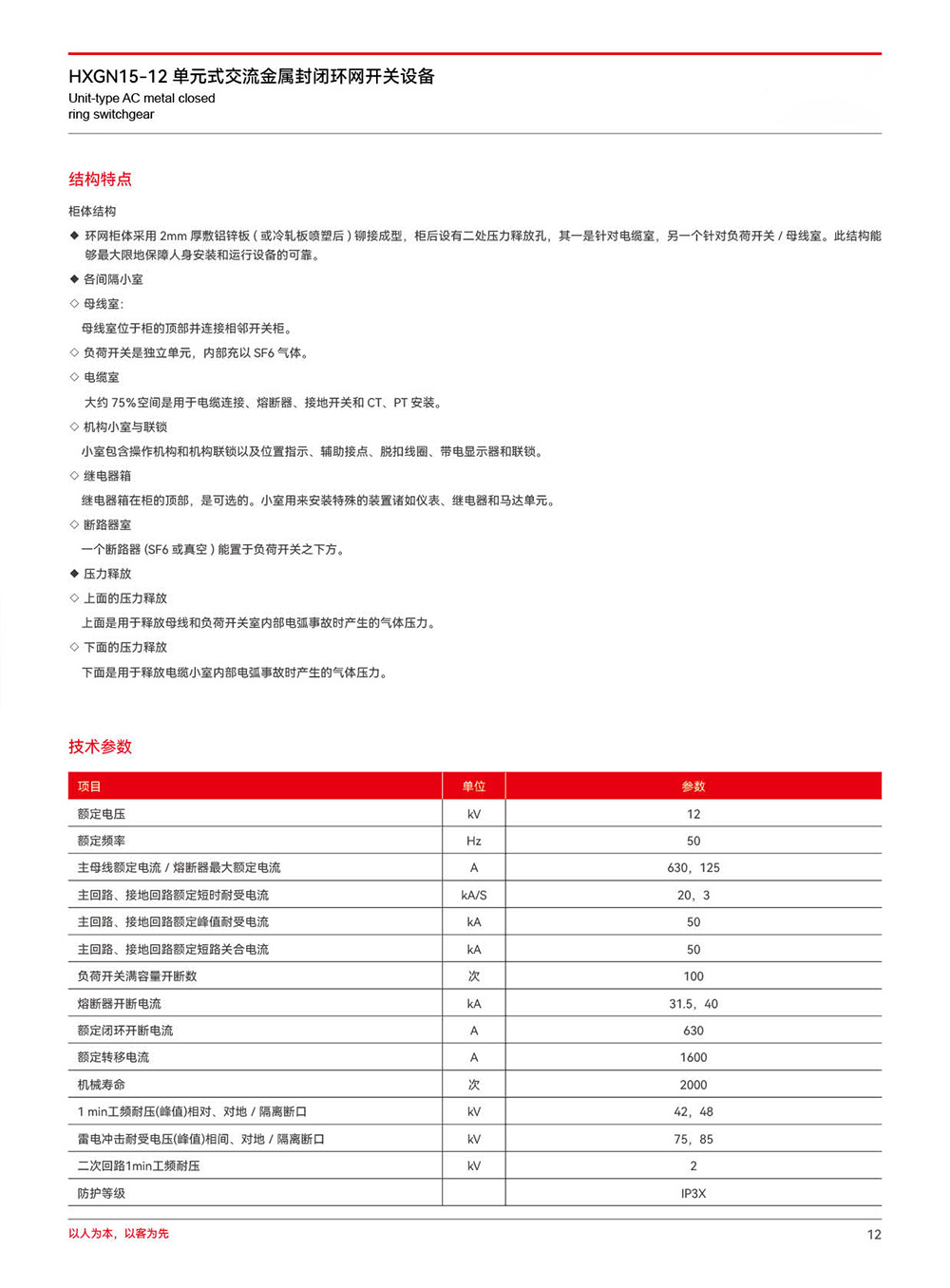 HXGN15-12单元式交流金属封闭环网开关设备 高压成套系列