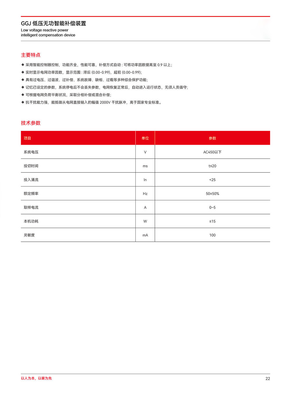 产品特点 技术参数