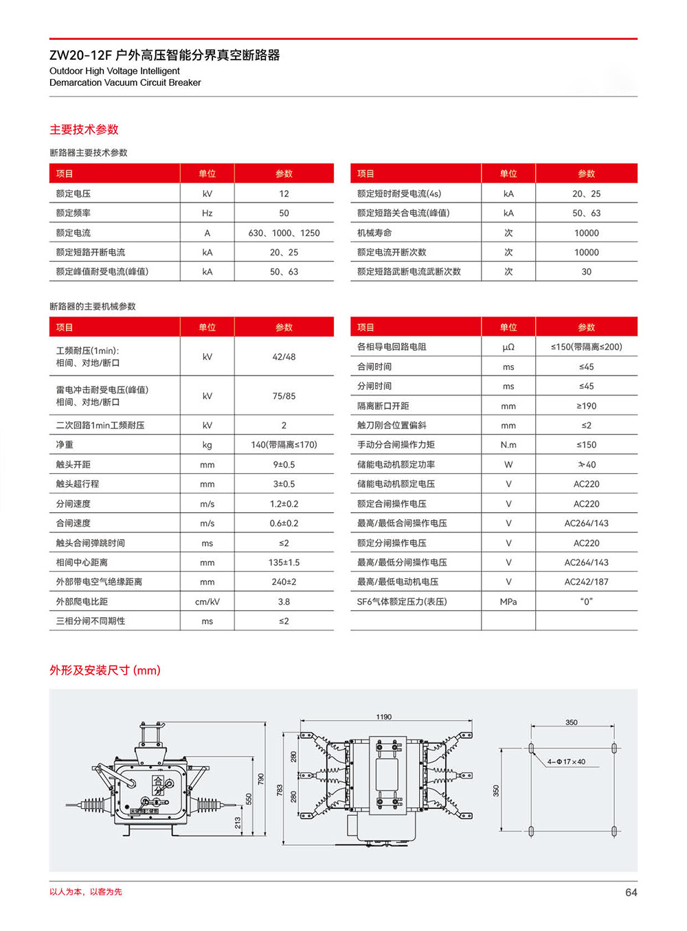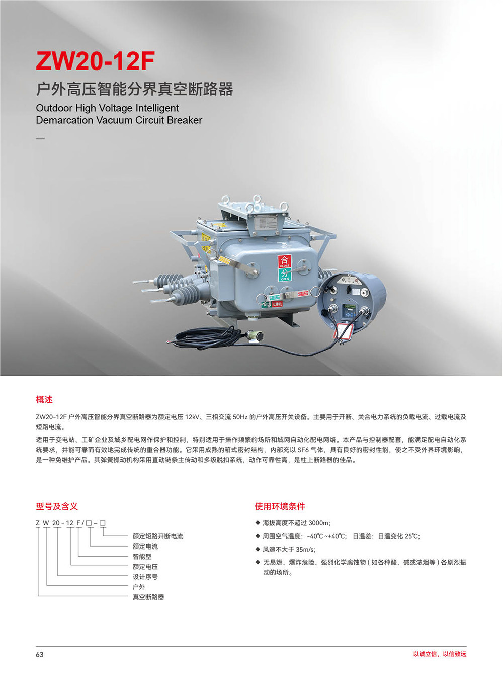 ZW20-12F 户外高压智能分界真空断路器 断路器系列