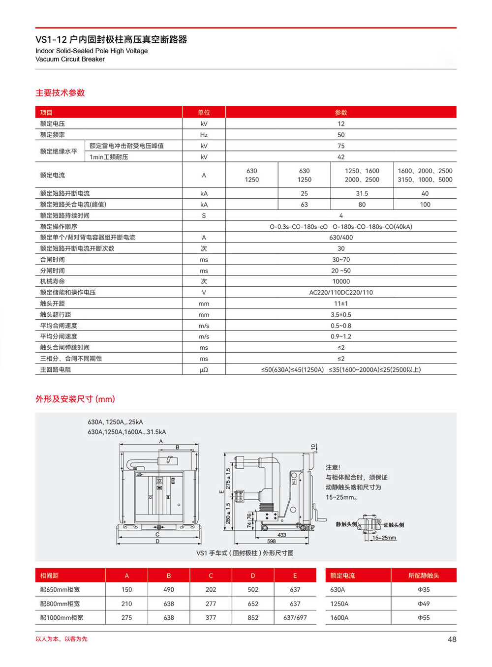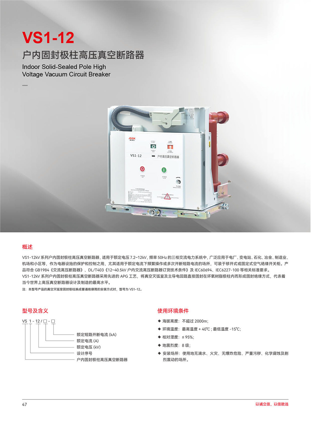 VS1-12 户内固封极柱高压真空断路器