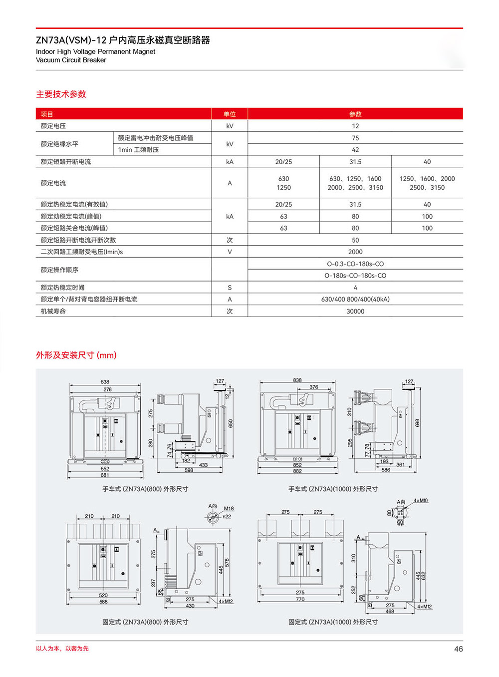 ZN73A(VSM)-12 户内高压永磁真空断路器